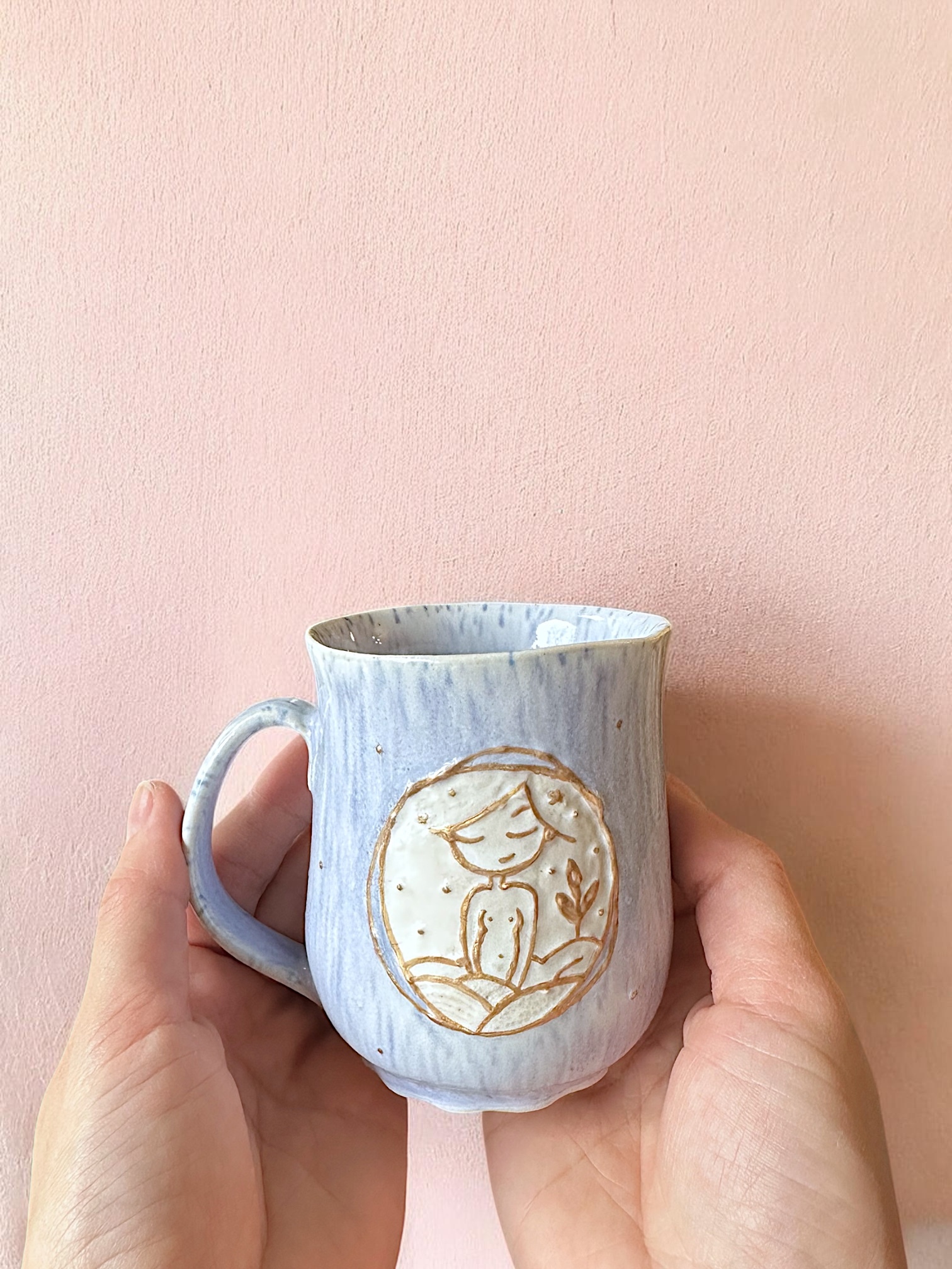 The soft blue glaze and organic form emphasize the natural, gentle character of the piece. Every detail is handmade, making this cup truly one of a kind.