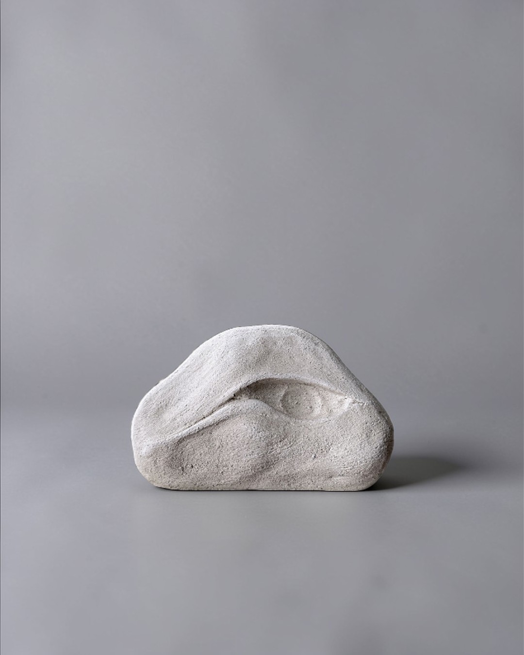 The surface combines smooth areas with subtle roughness. On the front — an eye integrated into the form. It is not a decorative accent, but part of the relief, quietly revealed in the light.